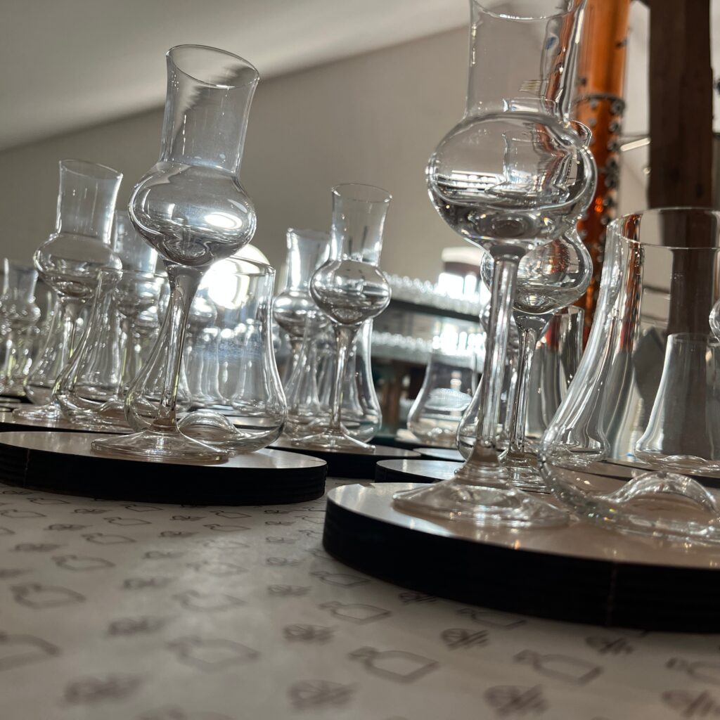We invite you to taste our spirits. Tastings can take place either at our distillery or at a location of your choice. Our experienced distillers will reveal the secrets of the distillation process, sharing insights into the selected ingredients that are key to giving our spirits their extraordinary taste and aroma. You will learn about our commitment to quality and the factors that influence the calibre of the final product.